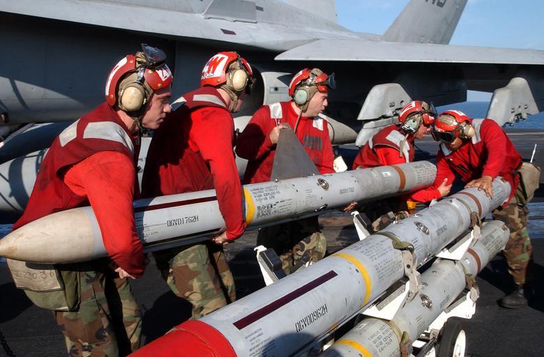 Keywords: US Navy 011216-N-9769P-064 Missiles being loaded on Navy F-A-18 Hornet strike fighter.jpg en At sea aboard USS John C Stennis CVN 74 Dec 16 2001 -- Marines from Fighter Attack Squadron Three One Four VFMA-314 work together to upload an F/A-18 Hornet with a sparrow missile aboard USS John C Stennis Stennis and her embarked Carrier Air Wing Nine CVW 9 are operating in support of Operation Enduring Freedom U S Navy photo by Photographer's Mate 3rd Class Jayme Pastoric RELEASED 2001-12-16 011216-N-9769P-064 Navy http //www navy mil/view_image asp id 2064 U S Navy photo by Photographer's Mate 3rd Class Jayme Pastoric PD-USGov-Military-Navy Aboard USS John C Stennis CVN-74 AIM-7 Sparrow Operation Enduring Freedom in 2001 War in Afghanistan 2001-present related operations outside of Afghanistan December 2001 photographs Military people in 2001 People of the United States in 2001 December 2001 in the United States 16 December Battle Dress Uniform in 2001 Male soldiers Military people on duty Men at work Sailors from the United States Navy |