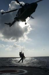Keywords: US Navy 020304-N-0872M-506 Helicopter operations UNITAS 2002.jpg en 020304-N-0872M-506 Caribbean Sea 4 March 2002 -- A Westland Sea Lynx helicopter from the Royal Netherlands Navy hoists an aircrewman and a U S Navy sailor off the flight deck of Colombian naval ship ARC Almirante Padilla CM-51 for tranfer back to the U S cruiser USS Yorktown CG-48 Almirante Padilla was one of the many South American naval units participating in the 43rd annual UNITAS exercise UNITAS is the largest multi-national naval exercise conducted with Naval Forces from the United States Caribbean Sea South and Central America 2002-03-04 020304-N-0872M-506 Navy http //www navy mil/view_image asp id 981 U S Navy photo by Photographer's Mate 1st Class Martin E Maddock PD-USGov-Military-Navy SH-14D 264 aircraft UNITAS 43-02 Helihoisting of people March 2002 photographs |