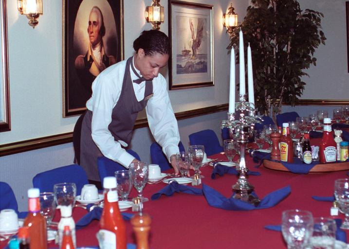 Keywords: US Navy 020325-N-4748O-001 Mess Specialist Prepares Dinner Table.jpg en At sea aboard USS George Washington CVN 73 Mar 25 2002 -- Mess Management Specialist 3rd Class Rasheen Maxwell from York PA prepares the dinner table for the ship s Executive Officer and Distinguished Visitors George Washington is conducting scheduled integrated training in the Atlantic Ocean off the Virginia coast U S Navy photo by Photographer s Mate Airman Geanine I Ortez RELEASED 2002-03-25 020325-N-4748O-001 Navy http //www navy mil/view_image asp id 1151 U S Navy photo by Photographer s Mate Airman Geanine I Ortez PD-USGov-Military-Navy Aboard USS George Washington CVN-73 March 2002 photographs |
