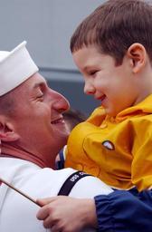 Keywords: US Navy 020425-N-1110A-502 Sailor is greeted by son during homecoming.jpg en Norfolk Naval Station VA Apr 25 2002 -- Damage Controlman 1st Class Jeff Paca is greeted by his son during homecoming celebrations for the U S Navy destroyer USS Cole DDG 67 The Cole has been at the Northrop Grumman Ship System facility in Pascagoula MS for the past 14 months undergoing repairs after a terrorist bomb blew a hole in her port side while refueling in the port city of Aden Yemen killing 17 sailors U S Navy photo by Photographer s Mate 1st Class Tina M Ackerman RELEASED 2002-04-25 020425-N-1110A-502 Navy http //www navy mil/view_image asp id 1368 U S Navy photo by Photographer s Mate 1st Class Tina M Ackerman PD-USGov-Military-Navy Personality rights Sailor suits Sailor collars Military people of the United States with children Naval Station Norfolk Sailors coming home Fathers and sons Boys of the United States April 2002 photographs April 2002 in the United States Military people in 2002 Sailor caps of the United States Navy 25 April April 2002 in Virginia Taken with Nikon D1H Sailors from the United States Navy Two males |