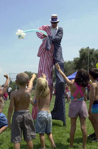 Keywords: US Navy 020704-N-9774H-006 4th of July in Gaeta, Italy.jpg en Gaeta Italy Jul 4 2002 -- Children from U S Navy families assigned to Commander Sixth Fleet the Command Ship USS La Salle AGF 3 Naval Support Activity Gaeta and civilians from the local community were treated to balloon animals and flowers from the tallest patriot at the 4th of July celebration held at Gaeta Italy's Olde Mill Inn U S Navy photo by Photographer's Mate 2nd Class Jordan Hawks RELEASED 2002-07-04 020704-N-9774H-006 Navy http //www navy mil/view_image asp id 1866 U S Navy photo by Photographer's Mate 2nd Class Jordan Hawks PD-USGov-Military-Navy Photographs taken on 2002-07-04 People in 2002 Fashion in 2002 Naval Support Activity Naples Detachment Gaeta 4th of July Celebration 2002 Stilters United States flag clothing Children of the United States July 2002 in Italy Aboard USS La Salle AGF-3 Personality rights |