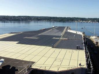 Keywords: US Navy 020715-N-7265L-010 USS Vinson - non-skid replacement.jpg en Puget Sound Naval Shipyard WA Jul 15 2002 -- The flight deck of USS Carl Vinson CVN 70 resembles a patchwork quilt as sections of the non-skid are replaced During Operation Enduring Freedom Carl Vinson's flight deck crew launched and recovered 4 200 combat sorties Vinson is homeported at Naval Station Bremerton WA and is conducting Planned Incremental Availability PIA period to install new technology and extend the operational capability of the ship U S Navy photo by Photographer s Mate 3rd Class Inez Lawson RELEASED 2002-07-15 020715-N-7265L-010 Navy http //www navy mil/view_image asp id 1958 U S Navy photo by Photographer s Mate 3rd Class Inez Lawson PD-USGov-Military-Navy Puget Sound Naval Shipyard in the 2000s USS Carl Vinson CVN-70 flight deck |