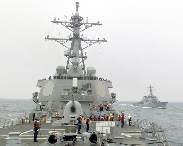 | Keywords: US Navy 020730-N-5067K-002 USS Benforld (DDG 65) and USS Fitzgerald prepare for an underway replenishment.jpg en At sea aboard USS Benfold DDG 65 Jul 30 2002 -- Sailors aboard the guided missile destroyer prepare for an underway replenishment UNREP while the destroyer USS Fitzgerald DDG 62 prepares to take station alongside Benfold Both vessels are participating in Fleet Battle Experiment Juliet FBE-J in the Pacific Ocean FBE-J is part of training exercises supporting Millennium Challenge 2002 MC-02 the nation's premier joint integrating event bringing together both live field exercises and computer simulations throughout the Department of Defense U S Navy photo by Photographer s Mate 2nd Class Michael D Kennedy RELEASED 2002-07-30 020730-N-5067K-002 Navy http //www navy mil/view_image asp id 2159 U S Navy photo by Photographer s Mate 2nd Class Michael D Kennedy PD-USGov-Military-Navy July 2002 photographs 30 July Aboard USS Benfold DDG-65 Coming alongside underway replenishment Millennium Challenge 2002 Aboard USS Fitzgerald DDG-62 July 2002 in the United States Military people in 2002 |