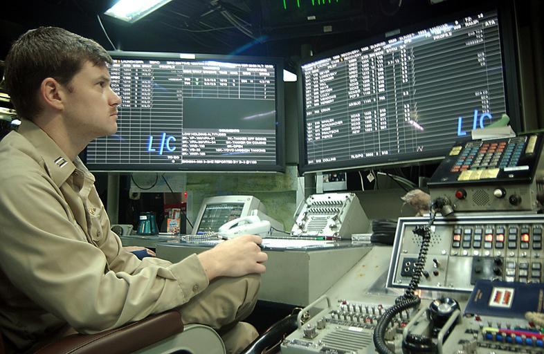 Keywords: US Navy 020801-N-7871M-001 Lt. Zinser monitors aircraft operation in the Ship's Carrier Air Traffic Control Center (CATCC).jpg en At sea aboard USS George Washington CVN 73 Aug 1 2002 -- Lt Mark Zinser from San Diego Calif uses the aircraft carrier's integrated shipboard information system to monitor aircraft operating in the area while standing watch in the Carrier Air Traffic Control Center CATCC Washington and Carrier Air Wing One Seven CVW-17 are on a regularly scheduled deployment conducting combat missions in support of Operation Enduring Freedom U S Navy photo by Photographer's Mate Airman Andrew Morrow RELEASED 2002-08-01 020801-N-7871M-001 Navy http //www navy mil/view_image asp id 2162 U S Navy photo by Photographer's Mate Airman Andrew Morrow PD-USGov-Military-Navy Aboard USS George Washington CVN-73 Carrier_Air_Traffic_Control_Center August 2002 photographs |