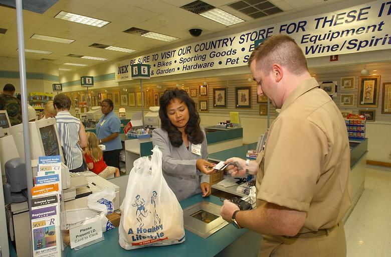 | Keywords: US Navy 020807-N-0872M-515 A Shopper pays for his purchase at one of the cashier counters inside the Navy Exchange located at Naval Base Little Creek.jpg en Norfolk Va Aug 7 2002 -- A Shopper pays for his purchase at one of the cashier counters inside the Navy Exchange located at Naval Base Little Creek U S Navy photo by Photographer s Mate 1st Class Martin Maddock RELEASED 2002-08-07 020807-N-0872M-515 Navy http //www navy mil/view_image asp id 2405 U S Navy photo by Photographer s Mate 1st Class Martin Maddock PD-USGov-Military-Navy Navy Exchange Little Creek Visitors in shops Plastic bags Shop checkouts August 2002 photographs Military people in 2002 August 2002 in the United States Barcode scanners August 2002 in Virginia Taken with Nikon D1H Credit card terminals Beige clothing Battle Dress Uniform in 2002 Personality rights |