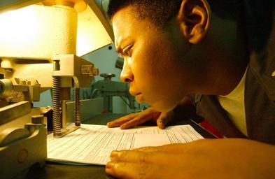 Keywords: US Navy 020816-N-6433N-001 Sailor works in the print shop.jpg en At sea aboard USS George Washington CVN 73 Aug 16 2002 -- Lithographer 3rd Class Jason Brown from Columbia S C concentrates on lining up documents to insert holes exactly in the correct spot down in the ship's print shop Washington is homeported in Norfolk Va and is on a six-month deployment conducting missions in support of Operation Enduring Freedom U S Navy photo by Photographer's Mate Airman Apprentice Rex Nelson RELEASED 2002-08-16 020816-N-6433N-001 Navy http //www navy mil/view_image asp id 2373 U S Navy photo by Photographer's Mate Airman Apprentice Rex Nelson PD-USGov-Military-Navy 16 August August 2002 photographs Aboard USS George Washington CVN-73 August 2002 in the United States Military people in 2002 Personality rights