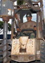 Keywords: US Navy 020821-N-0106C-001 Seabees make improvements to golf course at Pearl Harbor.jpg en Pearl Harbor Hawaii Aug 21 2002 -- Builder 3rd Class Ismael Rodriquez of Construction Battalion Unit 413 CBU digs a hole for a fence post while making improvements at the Navy-Marine Golf Course Construction Battalion 413 has earned the Bronze Hammer award for outstanding service for the second year in a row U S Navy photo by Journalist 2nd Class Daniel J Calderon RELEASED 2002-08-21 020821-N-0106C-001 Navy http //www navy mil/view_image asp id 2430 U S Navy photo by Journalist 2nd Class Daniel J Calderon PD-USGov-Military-Navy People at Pearl Harbor 2002 in Pearl Harbor Images from US Navy location Pearl Harbor Hawaii August 2002 photographs August 2002 in the United States Military people in 2002 2002 in Hawaii Men at work in the United States Men with hard hats Military people on duty Battle Dress Uniform in 2002 Bobcat vehicles 21 August Male soldiers Photographs of sitting men Personality rights |