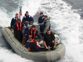 Keywords: US Navy 020917-N-0000X-001 RHIB boat deployes from FFG 41 for rescue at sea.jpg en At Sea off the coast of Costa Rica Sep 17 2002 -- Crewmembers from the U S Navy frigate USS McClusky FFG 41 deploy one of the ship s ridged hull inflatable boats RHIB to render assistance to 62-year-old Richard Van Pham who was spotted adrift in his small sailboat by military aircraft conducting drug interdiction operations in the region U S Navy Photo RELEASED 2002-09-17 020917-N-0000X-001 Navy http //www navy mil/view_image asp id 2788 U S Navy photo PD-USGov-Military-Navy Images from US Navy location At Sea off the coast of Costa Rica Rigid-hulled inflatable boats of US Navy USS McClusky FFG-41 |