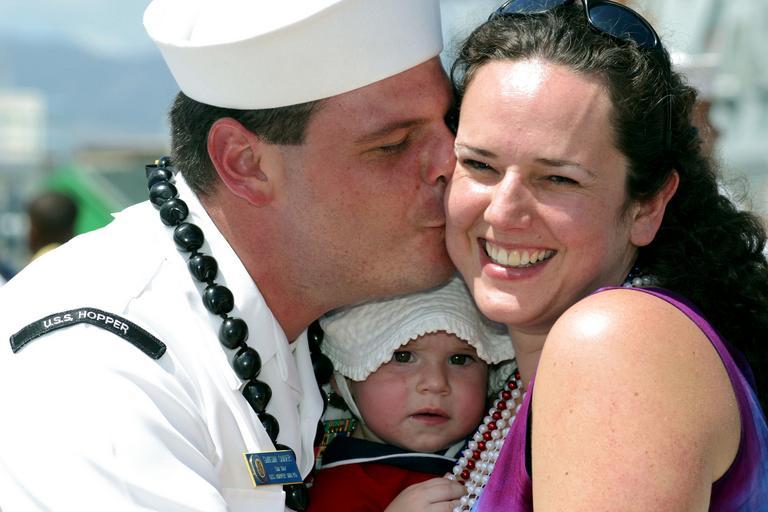 Keywords: US Navy 021002-N-3228G-003 Gunner's Mate greets his wife and daughter after returning to Hawaii aboard USS Hopper (DDG 70).jpg en Pearl Harbor Hawaii Oct 2 2002 -- Gunner's Mate 1st Class Gregory Snider greets his wife and daughter after returning to Hawaii aboard USS Hopper DDG 70 The guided missile destroyer returns to Hawaii after a regularly scheduled deployment in support of Operation Enduring Freedom During the deployment Hopper sailed over 41 000 nautical miles qualified 139 Enlisted Surface Warfare Specialists and served as the flagship for the Maritime Interdiction Operation MIO Commanders conducting numerous queries and boarding procedures in support of United Nations Sanctions U S Navy photo by Photographer's Mate 1st Class William R Goodwin RELEASED 2002-10-02 021002-N-3228G-003 Navy http //www navy mil/view_image asp id 2879 U S Navy photo by Photographer's Mate 1st Class William R Goodwin PD-USGov-Military-Navy Gunner's Mate Men kissing women's cheeks People at Pearl Harbor 2002 in Pearl Harbor Images from US Navy location Pearl Harbor Hawaii Aboard USS Hopper DDG-70 Family October 2002 photographs Photographs by William R Goodwin |