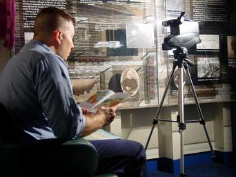 Keywords: US Navy 021029-N-0000J-004 Yeoman is recorded on videotape as he reads ^ldquo,Winnie the Pooh^rdquo, to his daughters.jpg en At sea aboard USS Abraham Lincoln CVN 72 -- Yeoman 2nd Class Jeff Garaux is recorded on videotape as he reads the classic story of Winnie the Pooh Meets Gopher; to his daughters Garaux s tape for his daughters along with similar tapes by many other Sailors done for their children is a part of Uniting Through Reading conducted in the Lincoln Room library aboard the aircraft carrier The Lincoln is on a regularly scheduled deployment conducting combat missions in support of Operations Enduring Freedom and Southern Watch U S Navy photo by Journalist 1st Class Keith Jones RELEASED 021029-N-0000J-004 Navy http //www navy mil/view_image asp id 3102 U S Navy photo by Journalist 1st Class Keith Jones PD-USGov-Military-Navy Aboard USS Abraham Lincoln CVN-72 Disney films Yeoman United States Navy Winnie The Pooh People with video cameras |