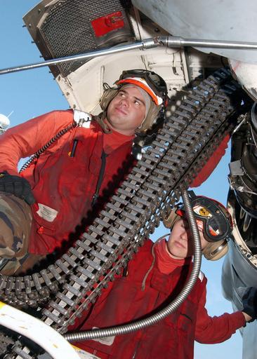 | Keywords: US Navy 021112-N-9593M-009 Aviation Ordnanceman 3rd Class supervises the loading of the M61-A1 20 mm. gatling gun.jpg en At sea aboard USS Abraham Lincoln CVN 72 Nov 12 2002 -- Aviation Ordnanceman 3rd Class Joshua Adkins from Trenton Ohio supervises the loading of the M61-A1 20 mm gatling gun on an F-14D Tomcat assigned to Fighter Squadron Thirty One VF-31 The M61-A1 Gatling gun is the main defensive weapon for U S Navy aircraft Abraham Lincoln VF-31 and Carrier Air Wing Fourteen CVW-14 are on a regularly scheduled six-month deployment conducting combat missions in support of Operation Enduring Freedom and Operation Southern Watch U S Navy photo by Photographer's Mate 3rd Class Philip A McDaniel RELEASED 2002-11-12 021112-N-9593M-009 Navy http //www navy mil/view_image asp id 3334 U S Navy photo by Photographer's Mate 3rd Class Philip A McDaniel PD-USGov-Military-Navy Aboard USS Abraham Lincoln CVN-72 Aviation Ordnanceman M61 Vulcan |