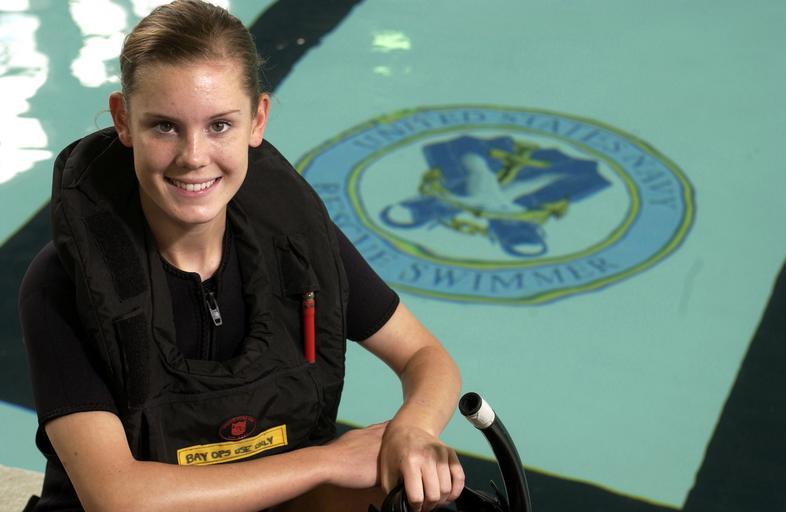 Keywords: US Navy 021115-N-5862D-006 U.S. Navy rescue swimmer.jpg en Aboard Naval Air Station NAS Pensacola Nov 15 2002 -- Aviation Warfare Technician 3rd Class Cory Lawrence from Eugene Ore is a recent graduate from the Navy s Rescue Swimmer School conducted aboard NAS Pensacola Lawrence is one of only a handful of women to make it through the physically demanding four week course of instruction that trains enlisted aircrew personnel how to rescue and recover downed aviators and personnel who have fallen overboard at sea U S Navy photo by Chief Photographer s Mate Chris Desmond RELEASED 021115-N-5862D-006 Navy http //www navy mil/view_image asp id 3476 U S Navy photo by Chief Photographer s Mate Chris Desmond PD-USGov-Military-Navy Naval Air Station Pensacola Rescue swimmers |