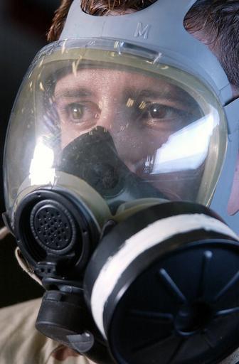 | Keywords: US Navy 021130-N-4142G-035 wearing a MCU-2P gas mask.jpg  en At sea aboard USS Constellation CV 64 Nov 30 2002 -- Machinist Mate 3rd Class Gerald Spohrer wears his MCU-2P gas mask during Chemical Biological and Radiological defense training with the Advanced Protective Chemical Garment APCG in the hangar bay of the USS Constellation Constellation is currently on a regularly scheduled six-month deployment conducting combat missions in support of Operation Enduring Freedom U S Navy photo by Photographer s Mate 2nd Class Felix Garza Jr RELEASED 2002-11-30 021130-N-4142G-035 Navy http //www navy mil/view_image asp id 3503 U S Navy photo by Photographer s Mate 2nd Class Felix Garza Jr PD-USGov-Military-Navy Aboard USS Constellation CV-64 Males wearing gas masks MCU-2/P Protective Mask Photographs by Felix Garza Jr |
