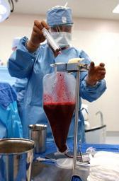 | Keywords: US Navy 021204-N-0696M-171 Surgical technician Amina Sherali places recently transfused bone marrow from Aviation Electronics Technician 1st Class Michael Griffioen into a sterile bag in preparation for transplant.jpg en Georgetown University Hospital Washington D C Dec 4 2002 - Surgical technician Amina Sherali places recently transfused bone marrow from Aviation Electronics Technician 1st Class Michael Griffioen into a sterile bag in preparation for transplant To determine the amount of marrow needed from each donor a sample is taken during the operation and T-cells are counted The level of T-cells and the body size of the recipient determine the amount of bone marrow to be harvested Griffioen is assigned to Precommissioning Unit Ronald Reagan and was matched with an anonymous cancer patient through the Department of Defense Marrow Donor Program Griffioen chose to donate his bone marrow after participating in a donor drive nine years ago while stationed aboard USS George Washington CVN 73 2002-12-04 021204-N-0696M-171 Navy http //www navy mil/view_image asp id 13335 U S Navy photo by Photographer's Mate 2nd Class Chad McNeeley PD-USGov-Military-Navy Georgetown University Hospital Bone marrow transplantation |