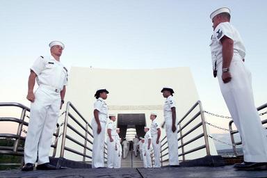 Keywords: US Navy 021205-N-3228G-006 Naval Station Pearl Harbor side boys rehearse outside the USS Arizona Memorial.jpg en Pearl Harbor Hawaii Dec 5 2002 -- Naval Station Pearl Harbor side boys rehearse outside the USS Arizona Memorial for the upcoming Dec 7th commemoration ceremony hosted by Commander Navy Region Hawaii The ceremony will feature guest speaker senior Senator Daniel Inouye of Hawaii and the attendance of 16 Pearl Harbor survivors and their family members A wreath-laying by service members from each branch of the U S military services the Governor of Hawaii the Pearl Harbor Survivors Association and more than 20 veteran's groups will also be a part of the ceremony The commemoration is the 61st since the Dec 7 1941 attack on Pearl Harbor and is held to honor the men and women who lost their lives that day U S Navy photo by Photographer's Mate 1st Class William R Goodwin RELEASED 2002-12-05 021205-N-3228G-006 Navy http //www navy mil/view_image asp id 3606 U S Navy photo by Photographer's Mate 1st Class William R Goodwin PD-USGov-Military-Navy USS Arizona Memorial Photographs by William R Goodwin |