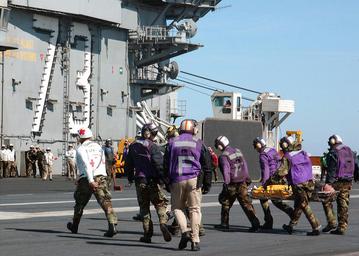 Keywords: US Navy 030202-N-6278J-001 Rescue at sea aboard the USS George Washington CVN 73.jpg en At sea aboard USS George Washington CVN 73 Feb 2 2003 -- Flight deck crewmen and personnel assigned to the ship s medical department carry injured personnel across the ship s flight deck after four personnel were rescued from the burning merchant fishing vessel Diamond Shoal The fishing boat was off the coast of Jacksonville Fla at the time of the incident Five victims were recovered from the water with four survivors Two SH-60F Sea Hawk helicopters assigned to the Emerald Knights of Reserve Helicopter Anti-Submarine Squadron Seven Five HS-75 conducted the search and rescue SAR operation The Norfolk Va -based aircraft carrier is conducting carrier qualifications and training off the Atlantic coast U S Navy photo by Photographer's Mate Airman Joan Jennings RELEASED 2003-02-02 030202-N-6278J-001 Navy http //www navy mil/view_image asp id 4362 U S Navy photo by Photographer's Mate Airman Joan Jennings PD-USGov-Military-Navy Aboard USS George Washington CVN-73 SH-60F Oceanhawk |