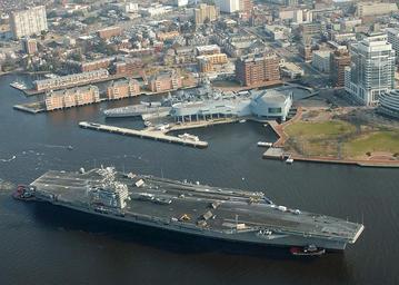 | Keywords: US Navy 030225-N-3653A-002 USS George Washington (CVN 73) passes by USS Wisconsin (BB 64).jpg en Norfolk Va Feb 25 2003 -- USS George Washington CVN 73 passes by the decommissioned battleship Wisconsin BB 64 in downtown Norfolk during her transit up the Elizabeth River from Norfolk Naval Station to Norfolk Naval Shipyard in Portsmouth Va U S Navy photo by Photographer's Mate 3rd Class Summer M Anderson RELEASED 2003-02-25 030225-N-3653A-002 Navy http //www navy mil/view_image asp id 4768 U S Navy photo by Photographer's Mate 3rd Class Summer M Anderson PD-USGov-Military-Navy General views of USS George Washington CVN-73 Battleship Wisconsin museum ship Nauticus Aerial photographs of Norfolk Virginia |
