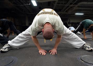 Keywords: US Navy 030305-N-4048T-018 Sailors aboard the amphibious assault ship USS Kearsarge (LHD 3) participate in Tae Kwon Do classes in the Lower Vehicle Stowage area.jpg en At sea aboard USS Kearsarge LHD 3 Mar 5 2003 - Sailors aboard the amphibious assault ship USS Kearsarge LHD 3 participate in Tae Kwon Do classes in the Lower Vehicle Stowage area Kearsage is currently deployed in support of Operation Enduring Freedom OEF U S Navy photo by Photographer s Mate 2nd Class Alicia Tasz RELEASED 2003-03-05 030305-N-4048T-018 Navy http //www navy mil/view_image asp id 12623 U S Navy photo by Photographer s Mate 2nd Class Alicia Tasz PD-USGov-Military-Navy Aboard USS Kearsarge LHD-3 |
