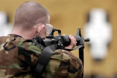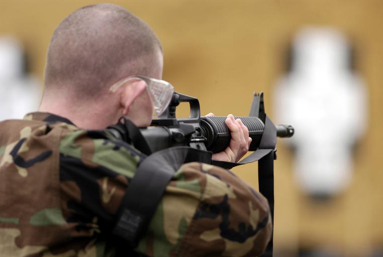 Keywords: US Navy 030317-N-9693M-002 Master-at-Arms Seaman James Mills takes aim at a target during an M-16 rifle qualification course.jpg en Naval Air Station Sigonella Sicily Mar 17 2003 -- Master-at-Arms Seaman James Mills takes aim at a target during an M-16 rifle qualification course for Naval Air Station NAS Sigonella security personnel NAS Sigonella provides logistical support for Sixth Fleet and NATO forces in the Mediterranean Sea U S Navy photo by Photographer's Mate 2nd Class Damon J Moritz RELEASED 2003-03-17 030317-N-9693M-002 Navy http //www navy mil/view_image asp id 5289 U S Navy photo by Photographer's Mate 2nd Class Damon J Moritz PD-USGov-Military-Navy Naval Air Station Sigonella Master-at-arms Males with M16 rifle |