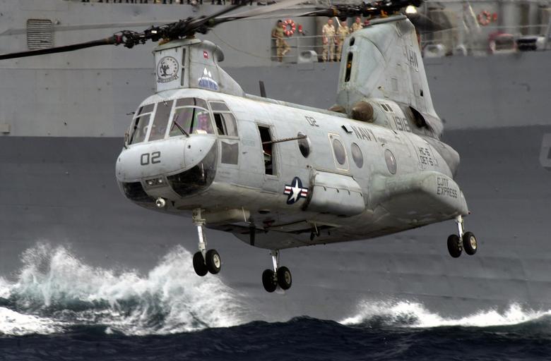 Keywords: US Navy 030325-N-3443B-001 A CH-46 Sea Knight carries supplies and stores during a vertical replenishment (VERTREP).jpg en The Gulf Aden Mar 25 2003 -- A CH-46 Sea Knight assigned to the Chargers Helicopter Combat Support Squadron Six HC-6 deployed aboard the amphibious command and control ship USS Mount Whitney LCC/JCC 20 carries supplies and stores during a vertical replenishment VERTREP Mount Whitney is conducting missions in support of Operation Enduring Freedom and the continuing war on terror U S Navy photo by Chief Journalist Robert Benson RELEASED 2003-03-25 030325-N-3443B-001 Navy http //www navy mil/view_image asp id 5752 U S Navy photo by Chief Journalist Robert Benson PD-USGov-Military-Navy Piracy in Somalia Vertical replenishment CH-46 Sea Knight Helicopter Combat Support Squadron 6 United States Navy Aircraft low altitude flight Aboard USS Mount Whitney LCC-20 |