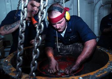 | Keywords: US Navy 030325-N-0466M-005 Electrician^rsquo,s Mate 3rd Class Adrian Maldonado from Queens, N.Y., holds a flash light while Electrician^rsquo,s Mate 2nd Class Douglas Stevenson from Meadville, PA., works on an exhaust vent fan.jpg en The Gulf of Aden Mar 25 2003 -- Electrician s Mate 3rd Class Adrian Maldonado from Queens N Y holds a flash light while Electrician s Mate 2nd Class Douglas Stevenson from Meadville PA works on an exhaust vent fan in the engine room aboard USS Mt Whitney LCC 20 Mount Whitney and her embarked Marines are deployed to the Horn of Africa region in support of Operation Enduring Freedom U S Navy photo by Photographer s Mate 3rd Class Aida E Miranda RELEASED 2003-03-25 030325-N-0466M-005 Navy http //www navy mil/view_image asp id 5846 U S Navy photo by Photographer s Mate 3rd Class Aida E Miranda PD-USGov-Military-Navy Aboard USS Mount Whitney LCC-20 Electrician's Mate Men with arm tattoos |