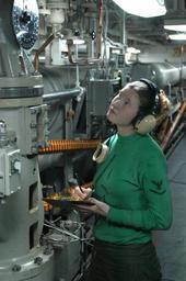 Keywords: US Navy 030328-N-9403F-024 Aviation Baotswain's Mate 3rd Class Amy Oshaughnessy from Nevada, Iowa, mans an arresting gear machinery room.jpg en The Arabian Gulf Mar 28 2003 -- Aviation Baotswain's Mate 3rd Class Amy Oshaughnessy from Nevada Iowa mans an arresting gear machinery room under the flight deck aboard the aircraft carrier USS Abraham Lincoln CVN 72 Petty Officer Oshaughnessy varies the resistance of the number arresting wires on the ship s flight deck depending on the weight and type of aircraft being recovered as well as monitoring operating pressures Lincoln and Carrier Air Wing Fourteen CVW 14 are conducting combat operations in support of Operation Iraqi Freedom Operation Iraqi Freedom is the multi-national coalition effort to liberate the Iraqi people eliminate Iraq's weapons of mass destruction and end the regime of Saddam Hussein U S Navy photo by Photographer's Mate Airman Jason Frost RELEASED 2003-03-28 030328-N-9403F-024 Navy http //www navy mil/view_image asp id 5999 U S Navy photo by Photographer's Mate Airman Jason Frost PD-USGov-Military-Navy Aboard USS Abraham Lincoln CVN-72 Arrestor cables |