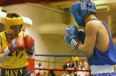 | Keywords: US Navy 030402-N-1485H-010 U.S. Navy boxing team member, Engineman 3rd Class Joseph Santisteven (left) from Rocky Ford, Colo., in the ring during a championship fight.jpg en Colorado Springs Colo Apr 2 2003 -- U S Navy boxing team member Engineman 3rd Class Joseph Santisteven left from Rocky Ford Colo in the ring during a championship fight held during the National Boxing Tournament held at the Olympic Training Center in Colorado Springs Colo Petty Officer Santisteven is assigned to Naval Mobile Construction Battalion Forty NMCB-40 home ported at Naval Base Ventura County Calif U S Navy photo by Photographer's Mate Airman Lamel J Hinton RELEASED 2003-04-02 030402-N-1485H-010 Navy http //www navy mil/view_image asp id 6400 U S Navy photo by Photographer's Mate Airman Lamel J Hinton PD-USGov-Military-Navy U S Olympic Training Center Sports in Colorado 2003 in Colorado 2003 in sports in the United States Engineman United States Navy Sports in the United States Navy Boxing in the United States Boxing competitions Sports championships |