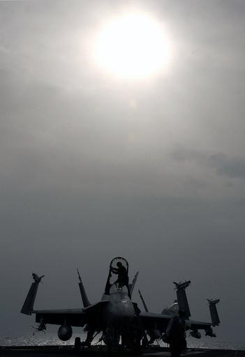 | Keywords: US Navy 030403-N-4308O-024 An F-A-18 Hornet from the ^ldquo,Silver Eagles^rdquo, of Marine Fighter Attack Squadron One Fifteen (VMFA-115).jpg en The Mediterranean Sea Apr 3 2003 -- An F/A-18 Hornet from the Silver Eagles of Marine Fighter Attack Squadron One Fifteen VMFA-115 is put through routine maintenance on the flight deck of USS Harry S Truman CVN 75 Truman and Carrier Air Wing Three CVW-3 are deployed in support of Operation Iraqi Freedom the multi-national coalition effort to liberate the Iraqi people eliminate Iraq's weapons of mass destruction and end the regime of Saddam Hussein U S Navy photo by Photographer's Mate Airman Ryan O'Connor RELEASED 2003-04-03 030403-N-4308O-024 Navy http //www navy mil/view_image asp id 6280 U S Navy photo by Photographer's Mate Airman Ryan O'Connor PD-USGov-Military-Navy Aboard USS Harry S Truman CVN-75 |