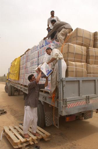| Keywords: US Navy 030408-N-5362A-004 Iraqi volunteers from the city of Najaf work with Kuwaiti volunteers to help unload water for Iraqi citizens in need.jpg en Near Al Najaf Iraq April 08 2003 -- Iraqi volunteers from the city of Najaf work with Kuwaiti volunteers to help unload water for Iraqi citizens in need The U S military is working with international relief organizations to help provide food and medicine for the Iraqi people in support of Operation Iraqi Freedom Operation Iraqi Freedom is the multinational coalition effort to liberate the Iraqi people eliminate Iraq's weapons of mass destruction and end the regime of Saddam Hussein U S Navy photo by Photographer's Mate 1st Class Arlo K Abrahamson RELEASED 2003-04-08 030408-N-5362A-004 Navy http //www navy mil/view_image asp id 6520 U S Navy photo by Photographer's Mate 1st Class Arlo K Abrahamson PD-USGov-Military-Navy Najaf Humanitarian aid in Iraq |