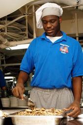 | Keywords: US Navy 030414-N-2410G-502 Mess Specialist Seaman Calvin Powell from Greenville, Ala. prepares a meal.jpg en Mediterranean Sea Apr 14 2003 -- Mess Specialist Seaman Calvin Powell from Greenville Ala prepares a meal for the crew of USS Theodore Roosevelt CVN 71 The nuclear powered aircraft carrier is currently conducting combat operations in support of Operation Iraqi Freedom Operation Iraqi Freedom is the multi-national coalition effort to liberate the Iraqi people eliminate Iraq s weapons of mass destruction and end the regime of Saddam Hussein U S Navy photo by Photographer s Mate Airman Brad Garner RELEASED 2003-04-14 030414-N-2410G-502 Navy http //www navy mil/view_image asp id 6771 U S Navy photo by Photographer s Mate Airman Brad Garner PD-USGov-Military-Navy Aboard USS Theodore Roosevelt CVN-71 |