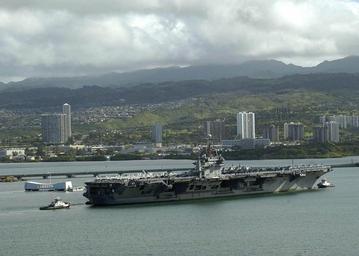 Keywords: US Navy 030426-N-7590D-024 USS Abraham Lincoln (CVN 72) makes a port call at Pearl Harbor, Hawaii, on its way home.jpg en Pearl Harbor Hawaii Apr 26 2003 -- USS Abraham Lincoln CVN 72 makes a port call at Pearl Harbor Hawaii on its way home from a deployment spanning over nine months in support of Operation Iraqi Freedom Abraham Lincoln is among the first ships to return home from Operation Iraqi Freedom Operation Iraqi Freedom is the multi-national coalition effort to liberate the Iraqi people eliminate Iraq's weapons of mass destruction and end the regime of Saddam Hussein U S Navy photo by Photographer s Mate 1st Class Keith W DeVinney RELEASED 2003-04-26 030426-N-7590D-024 Navy http //www navy mil/view_image asp id 7000 U S Navy photo by Photographer s Mate 1st Class Keith W DeVinney PD-USGov-Military-Navy General views of USS Abraham Lincoln CVN-72 USS Abraham Lincoln CVN-72 at Pearl Harbor USS Arizona Memorial from a distance |