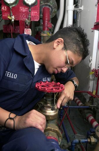 | Keywords: US Navy 030506-N-1577S-002 Fireman Erica Tello performs preventive maintenance and corrosion control on a valve, on an Aqueous Film Forming Foam (AFFF) station to prevent corrosion on the valves.jpg en The Arabian Gulf May 6 2003 -- Fireman Erica Tello performs preventive maintenance and corrosion control on a valve on an Aqueous Film Forming Foam AFFF station to prevent corrosion on the valves USS Nimitz CVN 68 Carrier Strike Group and Carrier Air Wing Eleven CVW-11 are deployed conducting missions in support of Operation Iraqi Freedom Operation Iraqi Freedom is the multi-national coalition effort to liberate the Iraqi people eliminate Iraq s weapons of mass destruction and end the regime of Saddam Hussein U S Navy photo by Photographer s Mate Airman Timothy F Sosa RELEASED 2003-05-06 030506-N-1577S-002 Navy http //www navy mil/view_image asp id 7336 U S Navy photo by Photographer s Mate Airman Timothy F Sosa PD-USGov-Military-Navy Aboard USS Nimitz CVN-68 Aqueous Film Forming Foam |