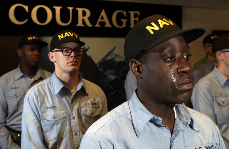 MAKE A MEME View Large Image Navy 030516-N-5862D-072 Seaman Recruit Joseph Sandiford from Brooklyn, N.Y., sheds tears of pride upon his division^rsquo,s successful completion of the Battlestations Drill.jpg en Recruit Training Command RTC Great Lakes Ill May 16 2003 -- ...