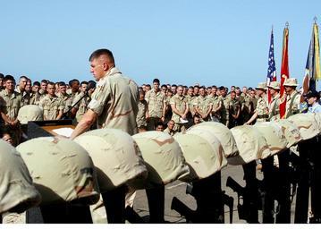 Keywords: US Navy 030526-N-4048T-063 Brig. Gen. Richard F. Natonski, Commanding General 2D Marine Expeditionary Brigade addresses more than 1,000 Sailors and Marines during a Memorial Day Service conducted on the ship^rsquo,s flight deck.jpg en At sea aboard the amphibious assault ship USS Kearsarge LHD 3 May 26 2003 -- Brig Gen Richard F Natonski Commanding General 2D Marine Expeditionary Brigade/Deputy Commanding General II Marine Expeditionary Force addresses more than 1 000 Sailors and Marines during a Memorial Day Service conducted on the ship s flight deck The special service honored the 23 Marines from the 2d Marine Expeditionary Brigade 2d MEB who paid the ultimate sacrifice during Operation Iraqi Freedom while remembering all who have fallen in previous conflicts Kearsarge is currently returning home after deploying January 12 2003 and is expected to arrive at her homeport in Norfolk Va in late June U S Navy photo by Photographer s Mate 2nd Class Alicia Tasz RELEASED 2003-05-26 030526-N-4048T-063 Navy http //www navy mil/view_image asp id 7621 U S Navy photo by Photographer s Mate 2nd Class Alicia Tasz PD-USGov-Military-Navy Aboard USS Kearsarge LHD-3 M16 rifle Soldier's Cross Richard F Natonski |