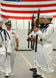 | Keywords: US Navy 030530-N-5576W-003 Vice Adm. Gerald L. Hoewing, Chief of Naval Personnel, Reviewing Officer for the May 30th recruit graduation, inspects the recruit rifle drill team during the ceremony at Recruit Training Command Grea.jpg en Naval Station Great Lakes Ill May 30 2003 -- Vice Adm Gerald L Hoewing Chief of Naval Personnel Reviewing Officer for the May 30th recruit graduation inspects the recruit rifle drill team during the ceremony at Recruit Training Command Great Lakes During his visit Vice Adm Hoewing also visited the new barracks USS Constitution and the physical training facility Freedom Hall that have recently been completed as part of a nearly 1 billion re-capitalization project to replace barracks and training facilities at Recruit Training Command U S Navy photo by Photographer's Mate 1st Class Michael A Worner RELEASED 2003-05-30 030530-N-5576W-003 Navy http //www navy mil/view_image asp id 7868 U S Navy photo by Photographer's Mate 1st Class Michael A Worner PD-USGov-Military-Navy Recruit Training Command Great Lakes Illinois |