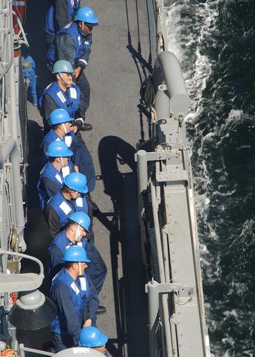 | Keywords: US Navy 030612-N-4374S-010 Sailors aboard the Aegis class, guided missile cruiser USS Vella Gulf (CG 72) heave on a stanchion line to receive the fuel line during the underway replenishment with the German oiler FGS Rhoen (A 1.jpg en Baltic Sea Jun 12 2003 -- Sailors aboard the Ticonderoga class guided missile cruiser USS Vella Gulf CG 72 heave on a stanchion line to receive the fuel line during the underway replenishment with the German oiler FGS Rhoen A 1443 during the annual maritime exercise Baltic Operations 2003 BALTOPS The United States and 12 other nations are participating in this year's exercise BALTOPS 2003 is intended to improve interoperability between allies and Partnership for Peace countries by conducting support operations at sea including exercises in gunnery replenishment at sea undersea warfare radar tracking mine countermeasures seamanship search and rescue maritime interdiction operations and scenarios dealing with potentially real world crises U S Navy photo by Photographer s Mate 2nd Class Michael Sandberg RELEASED 2003-06-12 030612-N-4374S-010 Navy http //www navy mil/view_image asp id 8144 U S Navy photo by Photographer s Mate 2nd Class Michael Sandberg PD-USGov-Military-Navy Aboard USS Vella Gulf CG-72 Line handlers underway replenishment BALTOPS 2003 |