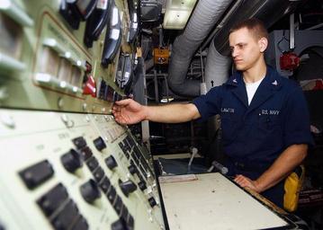 MAKE A MEME View Large Image Navy 030616-N-4374S-012 Gas Turbine Systems Technician 3rd Class Richard Lawton monitors the propulsion local control console.jpg en Baltic Sea Jun 16 2003 -- Gas Turbine Systems Technician 3rd Class Richard Lawton monitors the propulsion ...