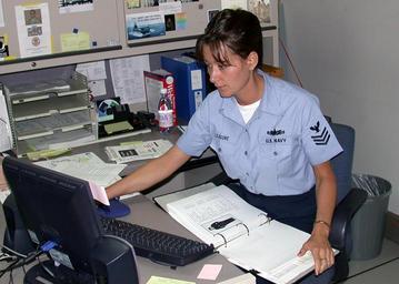| Keywords: US Navy 030618-N-2893B-001 Information Technician 1st Class Annette Leasure takes a few minutes to fill out the BUPERS Online Uniform Survey Questionnaire.jpg en Naples Italy June 18 2003 -- Information Systems Technician 1st Class Annette Leasure from New Castle Ind takes a few minutes to fill out the BUPERS Online Uniform Survey Questionaire with a copy of U S Navy Uniform Regulations in hand Sailors fleetwide have until July 8 to complete the survey for Task Force Uniform which can be found online at <a href http //www bol navy mil Target _BLANK >www bol navy mil</a> U S Navy photo by JO2 Eric Brown RELEASED 2003-06-18 030618-N-2893B-001 Navy http //www navy mil/view_image asp id 8254 U S Navy photo by JO2 Eric Brown PD-USGov-Military-Navy Naval Support Activity Naples |