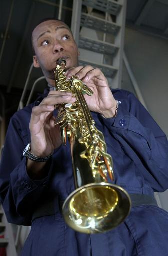 | Keywords: US Navy 030619-N-2143T-007 A sailor plays a Alto Sax during a Jazz night out on the fantail hosted by First Class Petty Officer Association where they get a chance to smoke cigars and relax aboard USS Nimitz (CVN 68).jpg en The Arabian Gulf Jun 19 2003 -- A sailor plays a Soprano Sax during a Jazz night out on the fantail hosted by First Class Petty Officer Association where they get a chance to smoke cigars and relax aboard USS Nimitz CVN 68 Nimitz Carrier Strike Group and Carrier Air Wing Eleven CVW-11 are deployed in support of Operation Iraqi Freedom Operation Iraqi Freedom is the multi-national coalition effort to liberate the Iraqi people eliminate Iraq s weapons of mass destruction and end the regime of Saddam Hussein U S Navy photo by Airman Maebel Tinoko RELEASED 2003-06-19 030619-N-2143T-007 Navy http //www navy mil/view_image asp id 8184 U S Navy photo by Airman Maebel Tinoko Note It's a soprano saxophone not a alto saxophone PD-USGov-Military-Navy Aboard USS Nimitz CVN-68 Soprano saxophones |