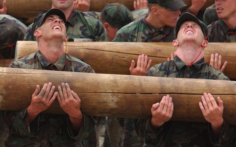 Keywords: US Navy 030622-N-3953L-106 Basic Underwater Demolition-SEAL (BUD-S) students participate in Log PT (physical training) during Hell Week.jpg en CORONADO Calif June 22 2003 - Basic Underwater Demolition/SEAL BUD/S students participate in Log PT physical training during Hell Week Log PT is a demonstration not only of physical strength and endurance but the importance of teamwork The intense physical and mental conditioning it takes to become a SEAL begins at BUD/S training During this six-month mind and body obstacle course recruits are pushed to their physical and mental limits Further development of the core values Honor Courage Commitment and Integrity is an essential component of SEAL training and one that is weaved throughout a SEAL s career First phase is the basic conditioning phase and is eight weeks in length Physical training involves running swimming and calisthenics all of which become increasingly difficult as the weeks progress The fourth week of training Hell Week is days of continuous training with very little sleep This week is designed to push students to their maximum capability both physically and mentally The remaining weeks are spent in hydrographic reconnaissance and basic maritime training U S Navy photo by Photographer's Mate 2nd Class Eric S Logsdon RELEASED 2003-06-22 030622-N-3953L-106 Navy http //www navy mil/view_image asp id 51690 U S Navy photo by Photographer's Mate 2nd Class Eric S Logsdon PD-USGov-Military-Navy Naval Special Warfare Center Basic Underwater Demolitions/SEAL |