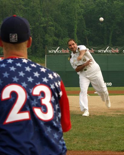 | Keywords: US Navy 030702-N-7170H-001 Cmdr. John Coray, Commanding Officer Navy Recruiting Command District Pittsburgh throws the first pitch of a Washington Wild Things game.jpg en Washington County Penn Jul 2 2003 -- Cmdr John Coray Commanding Officer Navy Recruiting Command District Pittsburgh throws the first pitch of a Washington Wild Things baseball game The Wild Things vs Chillicothe game sponsored a Navy appreciation day for the Sailors stationed in the Pittsburgh area U S Navy photo by Journalist 1st Class Joshua Hudson RELEASED 2003-07-02 030702-N-7170H-001 Navy http //www navy mil/view_image asp id 8413 U S Navy photo by Journalist 1st Class Joshua Hudson PD-USGov-Military-Navy Images from US Navy location Washington County Penn Ceremonial first pitch Minor League Baseball 2003 in baseball Number 23 on sportswear |