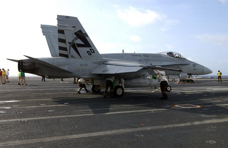 | Keywords: US Navy 030724-N-0192B-007 Mechanics assigned to the Salty Dogs of Air Test and Evaluation Squadron Two Three (VX-23) perform a systems check as they ready an F-A-18 Hornet for launch from the flight deck.jpg en Atlantic Ocean Jul 24 2003 Mechanics assigned to the Salty Dogs of Air Test and Evaluation Squadron Two Three VX-23 perform a systems check as they ready an F/A-18 Hornet for launch from the flight deck aboard the nuclear powered aircraft carrier USS Ronald Reagan CVN 76 Ronald Reagan is conducting sustained flight deck operations during the ship s initial flight deck certification off the coast of Virginia U S Navy photo by Photographer's Mate 3rd Class LaMon Bradford RELEASED 2003-07-24 030724-N-0192B-007 Navy http //www navy mil/view_image asp id 11708 U S Navy photo by Photographer's Mate 3rd Class LaMon Bradford PD-USGov-Military-Navy F/A-18 Hornet launches from USS Ronald Reagan CVN-76 F/A-18E Super Hornet on flight decks Air Test and Evaluation Squadron 23 United States Navy |