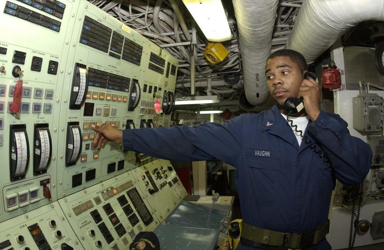 View Original:US_Navy_030816-N-2613R-002_Gas_Turbine_System_Technician_3rd_Class_Vaughn_from_Memphis_Tenn.,_checks_a_High_temperature_alarm_indicator_on_one_alpha_gas_turbine_generator_aboard_the_Spruance-class_destroyer_USS_Cushing_(DD_985).jpg (3008x1960)