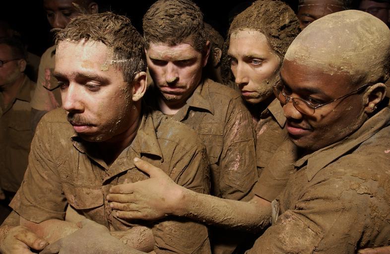 Keywords: US Navy 030915-N-5862D-225 Covered in mud, wet and cold, the men and women who have been selected but not yet promoted to Chief Petty Officer, huddle together to keep warm.jpg en Naval Support Activity Mid-South Millington Tenn Sept 15 2003 - Covered in mud wet and cold the men and women who have been selected but not yet promoted to Chief Petty Officer huddle together to keep warm after completing an obstacle course called the Seven Seas aboard Naval Support Activity Mid-South in Millington Tenn Where other services merely sew on another stripe when promoted from the E-6 to E-7 pay grade and show up to work the next day Chief selectee s across the Navy voluntarily submit to five weeks of intense training from their peers The initiation process is steeped in tradition and is used to train new Chiefs share experience and build teamwork in the worlds largest fraternity These non-commissioned officers endure a transition period that sets them apart from the sister services where by they learn to face adversity and challenges together as a team and reinforce the Navy core values of Honor Courage and Commitment U S Navy photo by Chief Photographer's Mate Chris Desmond RELEASED 2003-09-15 030915-N-5862D-225 Navy http //www navy mil/view_image asp id 11970 U S Navy photo by Chief Photographer's Mate Chris Desmond PD-USGov-Military-Navy Naval Support Activity Mid-South Mud Women in the United States Navy Taken with Nikon D1X |