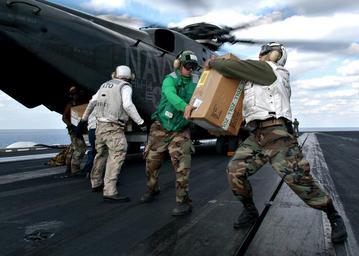 | Keywords: US Navy 031001-N-6187M-001 Aviation Electronics Technician Airman Rhett Taylor, from Daytona Beach, Fla., hands a package to Cpl. Raymando A. Sesmaurias, from Wellton, Ariz., during a mail on-load evolution.jpg en At sea aboard USS Enterprise CVN 65 Oct 1 2003 -- Aviation Electronics Technician Airman Rhett Taylor from Daytona Beach Fla hands a package to Cpl Raymando A Sesmaurias from Wellton Ariz during a mail on-load evolution The packages came from the cargo hold of a CH-53 Sea Stallion assigned to the Vanguards of Helicopter Mine Countermeasures Squadron Fourteen HM-14 Enterprise is underway in preparation for a scheduled Mediterranean Deployment U S Navy photo by Photographer's Mate 3rd Class Lance H Mayhew Jr RELEASED 2003-10-01 031001-N-6187M-001 Navy http //www navy mil/view_image asp id 9827 U S Navy photo by Photographer's Mate 3rd Class Lance H Mayhew Jr PD-USGov-Military-Navy Aboard USS Enterprise CVN-65 Aviation Electronics Technician Helicopter Mine Countermeasures Squadron 14 United States Navy |