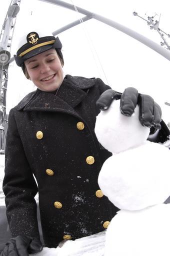 | Keywords: US Navy 031206-N-0399H-003 Midshipman 4th Class Christa Stowe, from Daytona Beach, Fla., makes the first snowman of her life, aboard Yard Patrol Craft 698 at Coast Guard Station Philadelphia.jpg en Philadelphia Pa Dec 6 2003 -- Midshipman 4th Class Christa Stowe from Daytona Beach Fla makes the first snowman of her life aboard Yard Patrol Craft 698 at Coast Guard Station Philadelphia The ship and crew are one of three Yard Patrol Crafts to make the transit from the Naval Academy in Annapolis Md to Philadelphia for the 104th playing of the Army Navy game U S Navy photo by Photographer's Mate 1st Class Dana Howe RELEASED 2003-12-06 031206-N-0399H-003 Navy http //www navy mil/view_image asp id 10898 U S Navy photo by Photographer's Mate 1st Class Dana Howe PD-USGov-Military-Navy Images from US Navy location Philadelphia PA |