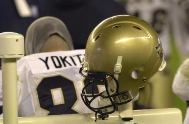 Keywords: US Navy 031206-N-9693M-509 A Navy helmet hangs on a warming post during the 104th Army Navy game.jpg en Philadelphia Pa Dec 6 2003 -- A Navy helmet hangs on a warming post during the 104th Army Navy game Both Army and Navy wore new style helmets which borrow shock-absorbing technology from Army paratrooper helmets Designed to minimize concussions the helmets were tested by Army and Navy throughout the season The Navy went on to defeat the Black Knights of Army by a score of 34-6 and have been invited to play at the EV1 net Houston Bowl on December 30th U S Navy photo by Damon J Moritz RELEASED 2003-12-06 031206-N-9693M-509 Navy http //www navy mil/view_image asp id 11001 U S Navy photo by Damon J Moritz PD-USGov-Military-Navy 2003 Army-Navy Game |