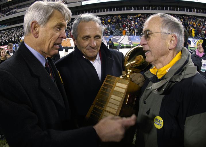 | Keywords: US Navy 031206-N-0399H-530 Secretary of the Army, the Honorable R. Les Brownlee shakes hands with Secretary of the Navy, the Honorable Gordon R. England as Secretary of Veterans Affairs Anthony Principi holds the Secretarys Tro.jpg en Philadelphia Pa Dec 6 2003 -- Secretary of the Army the Honorable R Les Brownlee shakes hands with Secretary of the Navy the Honorable Gordon R England as Secretary of Veterans Affairs Anthony Principi holds the Secretary's Trophy following the 104th Army Navy Game The Navy defeated the Black Knights of Army by a score of 34-6 and have been invited to play at the EV1 net Houston Bowl on December 30th U S Navy photo by Photographer's Mate 1st Class Dana Howe RELEASED 2003-12-06 031206-N-0399H-530 Navy http //www navy mil/view_image asp id 11014 U S Navy photo by Photographer's Mate 1st Class Dana Howe PD-USGov-Military-Navy 2003 Army-Navy Game United States Department of Veterans Affairs Secretary's Trophy Gordon R England Anthony Principi Les Brownlee |