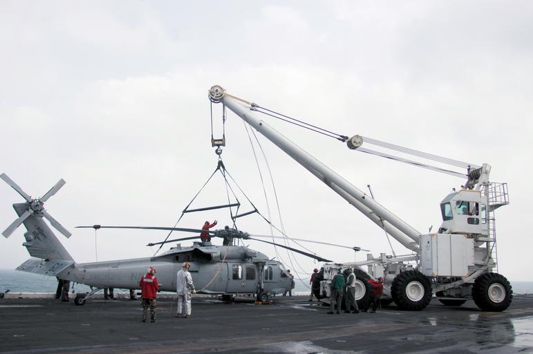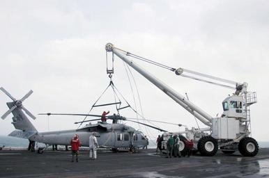 | Keywords: US Navy 031207-N-0715P-051 Members assigned to USS Peleliu (LHA 5) flight deck Crash and Salvage Team and the squadron personnel assigned to the Gunbearers.jpg en Northern Arabian Sea Dec 7 2003 -- Members assigned to USS Peleliu LHA 5 flight deck Crash and Salvage Team and the squadron personnel assigned to the Gunbearers of Helicopter Combat Support Squadron Eleven HC-11 Search and Rescue detachment rig a crane harness onto an MH-60S Knighthawk assigned HC-11 during training operations on the flight deck The Peleliu Expeditionary Strike Group ESG is currently deployed in support of Operation Iraqi Freedom and the continued war on terrorism U S Navy photo by Photographer's Mate 2nd Class Joshua L Pritekel RELEASED 2003-12-07 031207-N-0715P-051 Navy http //www navy mil/view_image asp id 10946 U S Navy photo by Photographer's Mate 2nd Class Joshua L Pritekel PD-USGov-Military-Navy Aboard USS Peleliu LHA-5 Aircraft crash and salvage cranes Helicopter Combat Support Squadron 11 United States Navy |