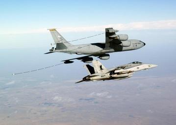 | Keywords: US Navy 040107-N-3799S-004 An F-A-18 Hornet assigned to the Marauders of Strike Fighter Squadron Eight Two (VFA-82) prepares to receive fuel from a U.S. Air Force KC-135R Stratotanker assigned to 380th Aerial Refueling Wing.jpg en A U S Navy McDonnell Douglas F/A-18C N Hornet assigned to Strike Fighter Squadron 82 VFA-82 Marauders prepares to receive fuel from a U S Air Force Boeing KC-135R Stratotanker s/n 59-1511 assigned to 380th Aerial Refueling Wing Visible under the Hornet s starboard wing pylon is a laser-guided bomb VFA-82 was deployed with Carrier Air Wing One CVW-1 aboard the aircraft carrier USS Enterprise CVN-65 conducting missions in support of Operation Iraqi Freedom and the continued war on terrorism 2004-01-07 040107-N-3799S-004 Navy http //www navy mil/view_image asp id 11303 U S Navy photo by Lt Perry Solomon PD-USGov-Military-Navy United States Navy images from Central Command Aerial refueling of F/A-18C Hornet Boeing KC-135 Stratotanker Strike Fighter Squadron 82 United States Navy Aerial refueling of F/A-18 Hornet |